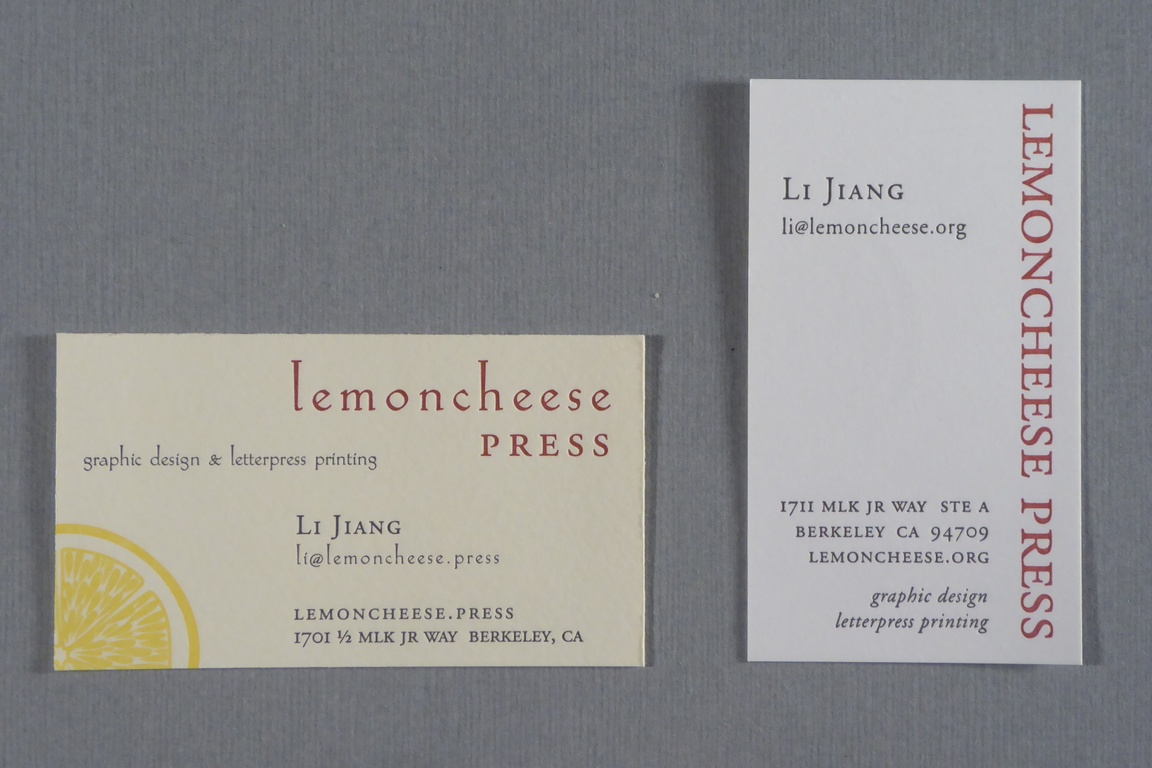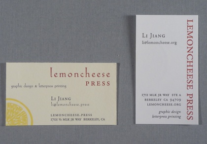 Lemoncheese Press is a letterpress and design studio based in Berkeley, California where Li Jiang designs, prints and binds custom letterpress ephemera, invitations, stationery and books. After earning a Bachelors Degree in Graphic Design Li fell in love with the hands on and tactile aspects of letterpress printing process and has been printing for the past 15 years.